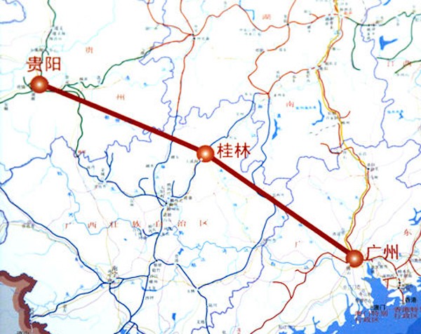 貴廣高速鐵路又稱貴廣客運專線,線路自貴陽北站起,經黔南州、黔東南州、廣西桂林、賀州、廣東云浮、肇慶、佛山終至廣州南站。