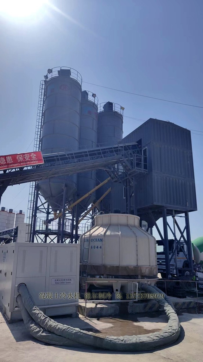 在中冀建勘混凝土攪拌站,混凝土冷水機為攪拌站提供低溫冷水,為混凝土降溫。